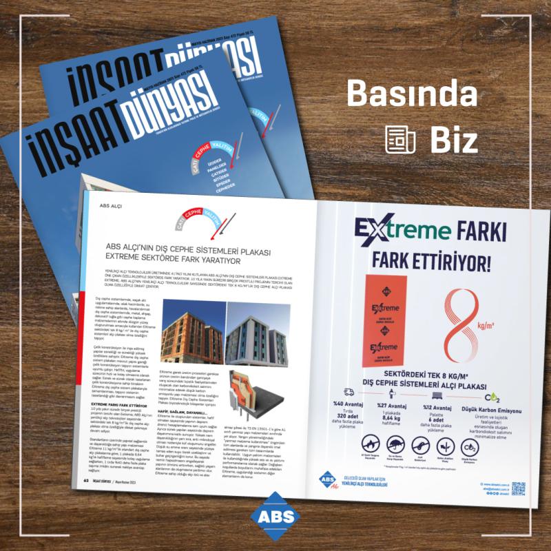 Üretiminin 41. Yılını kutlayan, Geleceği Olan Yapılar İçin Yenilikçi Alçı Teknolojileri üreten ABS Alçı’nın Dış Cephe Sistemleri Alçı Plakası EXtreme öne çıkan özellikleriyle fark yaratıyor.
