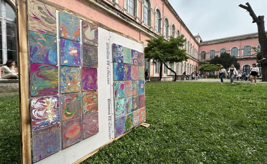 Öğrencilerin alçı plakalar üzerine yaptığı ebru tabloları Intreme Fit Ultralight alçı plakanın üzerine alçı plaka yapıştırma alçısı ile yapıştırılarak sanat duvarı yapıldı. Öğrencilerin hem çalışma hayatlarında kullanabilecekleri bilgileri sunmayı hem de bunu sanat ile birleştirmeyi severek yürütüyoruz.